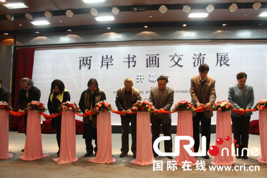 国际在线消息(记者 霍亮):12月24日,“两岸书画交流展”在北京台湾会馆隆重开幕。北京市台湾同胞联谊会副会长郑大、陈军;中国未来研究会油画院院长石成峰、新华书画院常务副院长李志元、《台湾新生报》两岸文化艺术交流策展人吴和珍,以及来自北京和台湾的近百位书画名家和各界人士出席了开幕式。