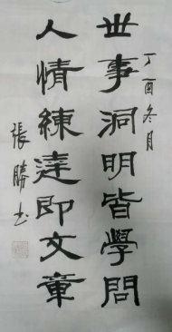 张胜,山东省阳谷县人。43岁,自幼喜爱书法,1991年去聊城市硬笔书法家协会。2009年山东省莘县书画大赛二等奖。2010年加入聊城市农民书画研究会。2016年山东省青年书法家协会会员。2016年录入文化部书画艺术人才库!2017年中国教育电视台水墨丹青书画院会员。现为365台湾备用网址委员。(文/魏莎)