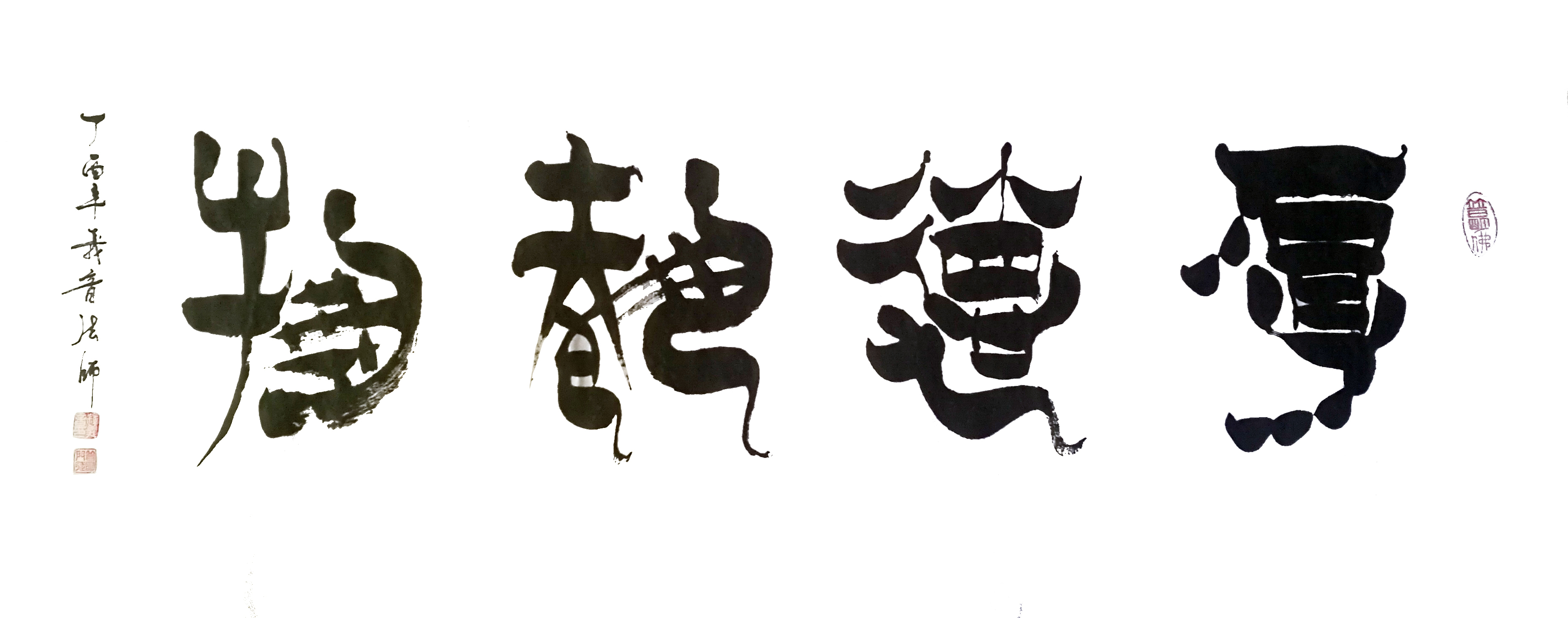 书法作品:开光亮金“心经”,更有令人耳目一新的最新佳作七宝经塔(即塔型心经)及其他作品。作品具有镇宅去邪,增福、增寿、增慧、消灾吉祥之妙有。是难得的法藏瑰宝。其墨宝几年来受到海内外知名人士收藏,引发主流媒体的广泛关注:2017年8月先后被中华网、中国网、中新网、人民网、搜狐网、今日头条、中国佛教网、艺术圈子栏目等争相报道。法师阐述禅书合一是佛法与世间融合的新思路,一点一画支起中国人的脊梁,一撇一捺激发民族脉动,它是每一位中国人命里的菩萨,禅是平常心,包容心,体现了中国人民的人文价值观,书法不单纯是桌案上的风雅,且蕴藏着一切物质生命于笔墨之中,尽是无声的呐喊!禅书合一是中国文化信仰的最好承载。现为365台湾备用网址主任委员。(文/王振)