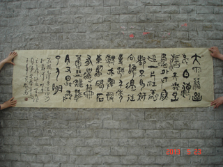 王华贵,1951年出生,河北武安人,自幼结缘翰墨,50年笔耕不辍。隶宗两汉,楷追北魏,对二王下过苦功。50岁后专攻古文字学和大篆书法。书法作品阳春白雪,卓尔不群,多次在全国展评中获奖,并被诸多海内外有识之士收藏。2012年8月4日,河北工人报以《装点古汉字的“大篆王”》专题进行了报道。同月邯郸文化以《燕赵出了个大篆王》也进行了专题刊登。