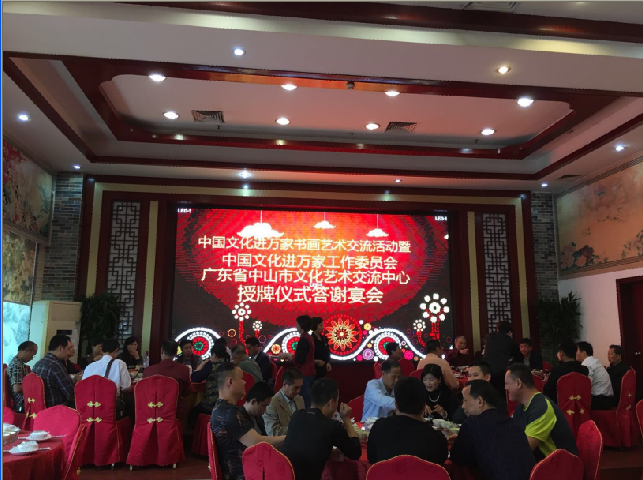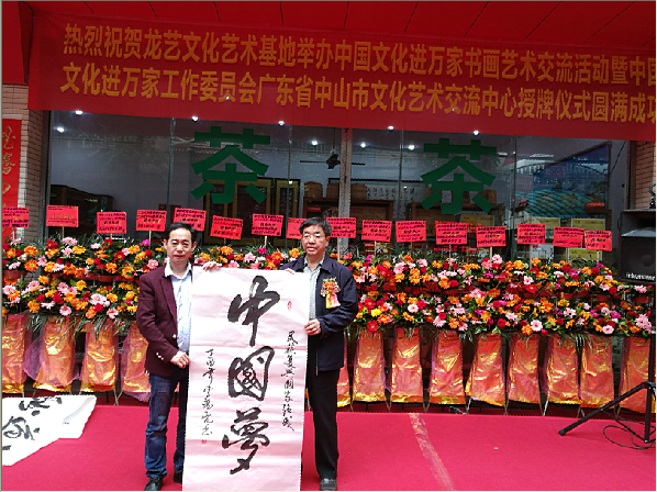 2017年4月12日,中国文化进万家工作委员会书画交流活动暨广东省中山市文化艺术交流中心成立授牌仪式在中山市东凤镇龙艺文化艺术基地隆重举行。
