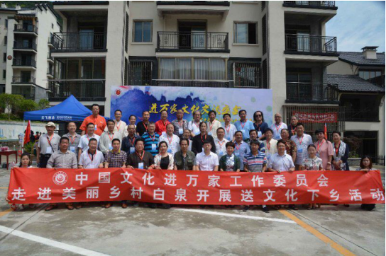 据了解,此次活动为了贯彻落实习近平总书记在文艺工作座谈会上的重要讲话和中央关于文化走基层的系列精神而开展。“中国文化进万家工作委员会”结合中宣部、文化部统一部署的“深入生活,扎根人民”主题实践活动,于今年6月10日启动了中国文化进万家采风团送文化下乡大型书画艺术基层采风创作巡展活动。活动主要通过对接或组织国内及本土知名书画家蹲点深入基层、深入生活,以书法、美术等艺术形式反映东阳白泉美丽乡村建设、旅游建设、自然景观、风土人文等,全方位、多角度地抒写美丽白泉、魅力白泉的人文情怀,并将所创作的作品赠送给白泉群众。进万家采风团进行为期四天的采风创作,描绘所见所闻自然美景、风土人文、发展新貌,并将通过开展巡展活动,让外界更多了解白泉、宣传白泉、关注白泉,不断提升白泉的美誉度和对外影响力。