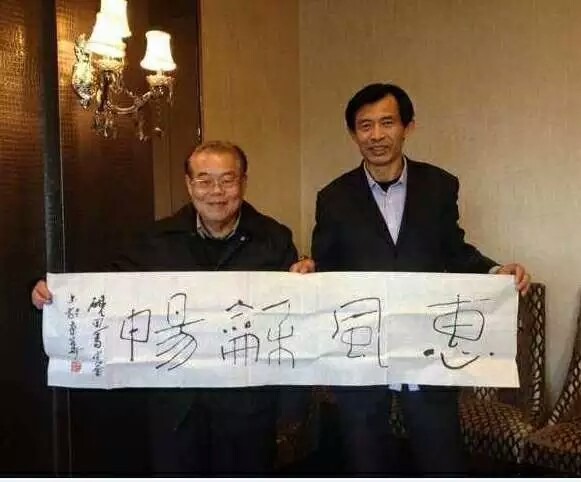 砚田马中华赠送中宣部原常务副部长龚心瀚作品并合影