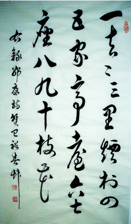 人物简介:赵裕春,男,1969年4月出生,江苏泰兴人,研究生学历,别名子墨,又名朔源,号三正居士,中国楹联学会会员,中国长城书画家协会会员。自幼酷爱书法,尤擅草书,启蒙于军旅著名毛体书法家毛国林,师从中国书法艺术研究院张玉亮院长。作品多次在《空军报》、《军嫂杂志》发表。2013年9月参加《玉亮书魂》--张玉亮暨弟子书法作品联展。11月,中国广播网军事频道专题宣传。12月,作品入选纪念毛泽东诞辰120周年百名将军暨书画名家作品联展并在全国巡回展出。